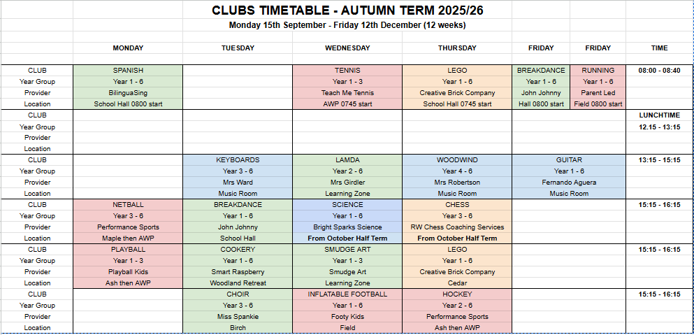 LAMDA Speech & Drama on Wednesdays with Mrs Girdler (Y2 - Y6): Each session costs £10 per week. Please contact Mrs Katie Girdler on Katie.lamda@outlook.com to register your interest or request further information. From September 2025, lessons will be offered to children in Y2 as well as Y3-Y6.