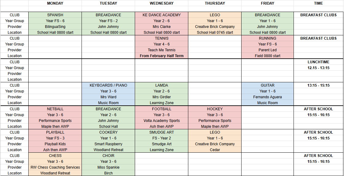 Cookery on Tuesdays (Y1 - Y6) with Smart Raspberry: Each session costs £12 per week. To book your child's place, please use the link here which will take you to the relevant booking page within Smart Raspberry's website. Places will be allocated on a first come, first-served basis. If your child qualifies for pupil premium, please email Alicia on alicia@smartraspberry.com to book and Smart Raspberry will liaise with School to cover the cost of your course.